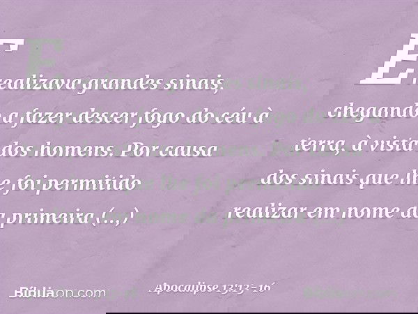 13 E faz grandes sinais, de maneira que até fogo faz descer do céu à terra, à vista dos homens.