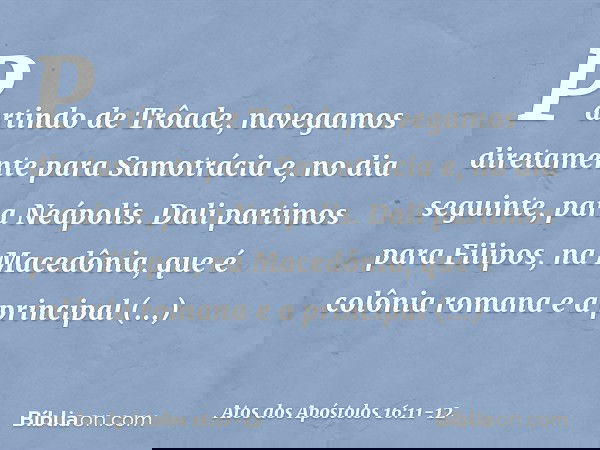 11 Partindo de Trôade, navegamos diretamente para Samotrácia e, no dia seguinte, para Neápolis.
