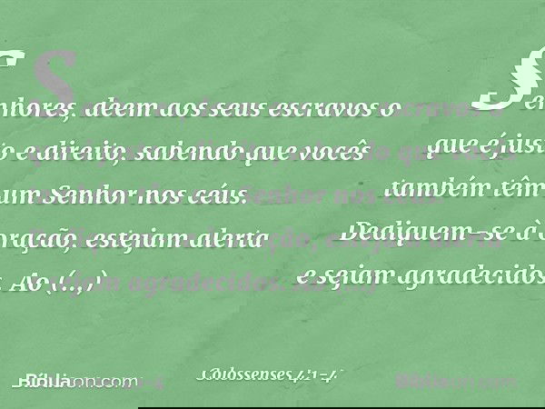 1 Senhores, deem aos seus escravos o que é justo e direito, sabendo que vocês também têm um Senhor nos céus.