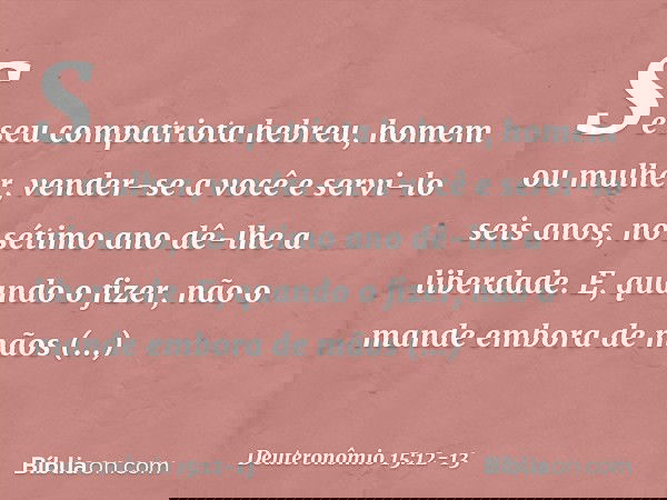 12 "Se seu compatriota hebreu, homem ou mulher, vender-se a você e servi-lo seis anos, no sétimo ano dê-lhe a liberdade.