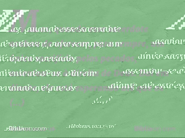 12 mas este, havendo oferecido um único sacrifício pelos pecados, está assentado para sempre à destra de Deus,