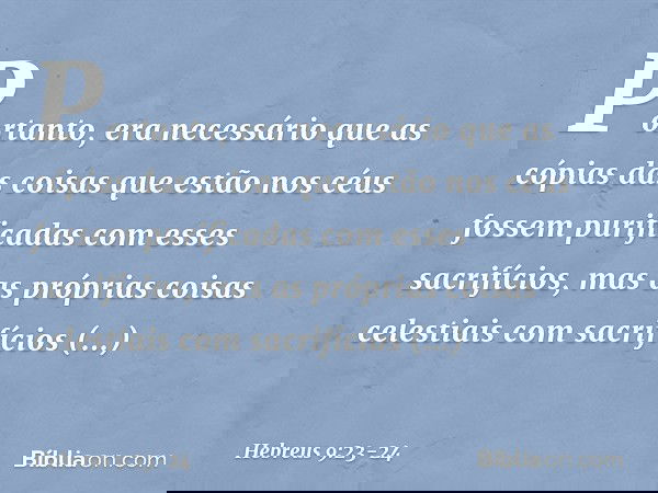 23 Era necessário, portanto, que as figuras das coisas que estão no céu fossem purificadas com tais sacrifícios, mas as próprias coisas celestiais com sacrifícios melhores do que estes.