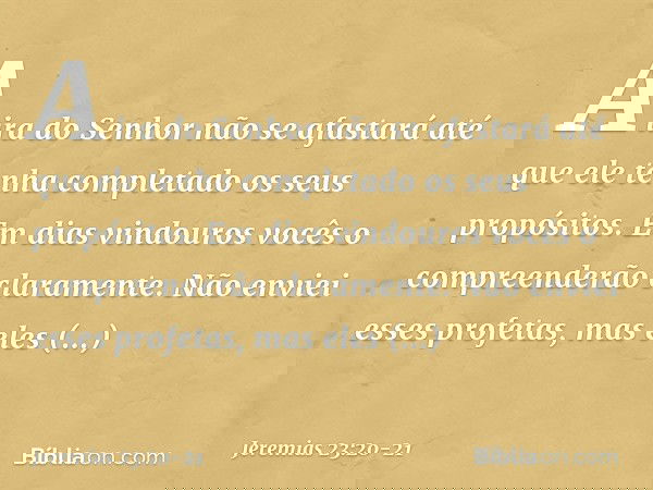 20 Não se desviará a ira do SENHOR até que execute e cumpra os pensamentos do seu coração; no fim dos dias, entendereis isso claramente.