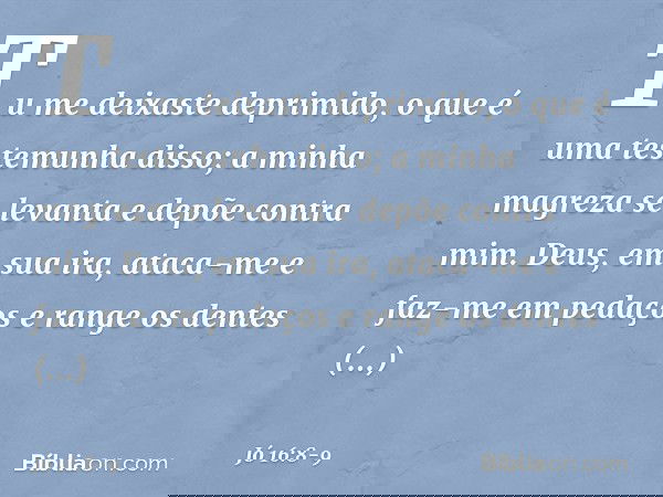 8 Tu me emagreceste, e isso constitui uma testemunha contra mim; contra mim se levanta a minha magreza, e o meu rosto testifica contra mim.