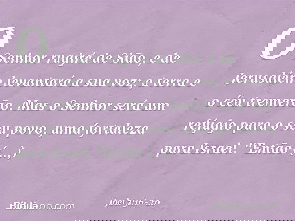 16 E o Senhor brama de Sião, e de Jerusalém faz ouvir a sua voz; os céus e a terra tremem, mas o Senhor é o refúgio do seu povo, e a fortaleza dos filhos de Israel.