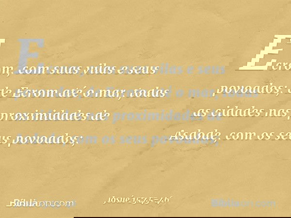 46 desde Ecrom até o mar, todas as que estão nas adjacências de Asdode, e as suas aldeias;