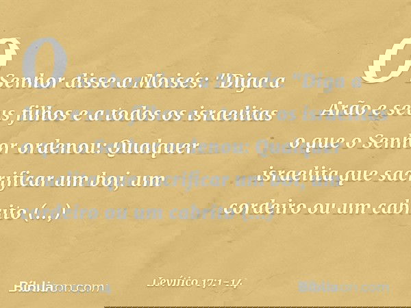 2 "Diga a Arão e seus filhos e a todos os israelitas o que o Senhor ordenou: