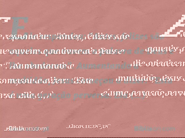 28 Ele respondeu: "Antes, felizes são aqueles que ouvem a palavra de Deus e lhe obedecem".