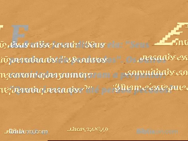 48 Então Jesus disse a ela: "Seus pecados estão perdoados".