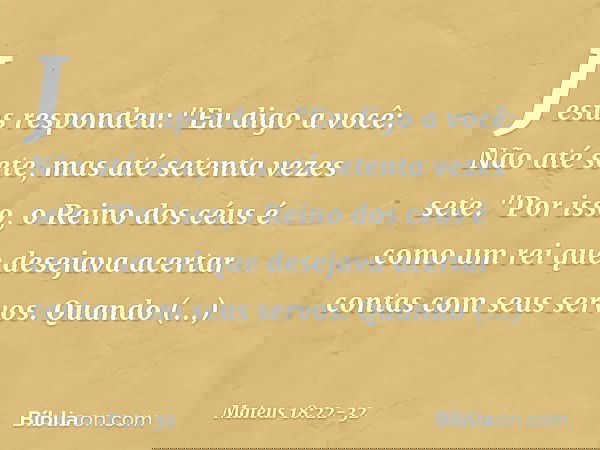 22 Respondeu-lhe Jesus: Não te digo que até sete; mas até setenta vezes sete.