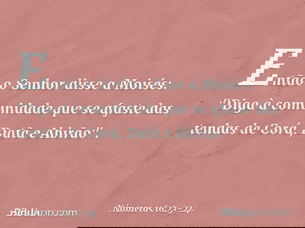 24 "Diga à comunidade que se afaste das tendas de Corá, Datã e Abirão".