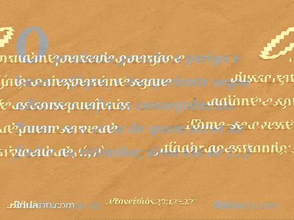 12 O prudente vê o mal e se esconde; mas os insensatos passam adiante e sofrem a pena.