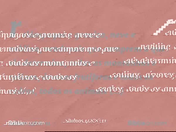 8 fogo e saraiva, neve e vapor; vento tempestuoso que excuta a sua palavra;